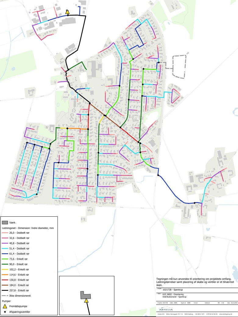 Vi glæder os til at få vores by konverteret fra nuværende gas/olie til grøn fjernvarme. Men inden det kan ske, skal der graves ca. 37.000 meter rør og slanger ned og vi skal have bygget et værk med en varmepumpe på 5,0 MW luft/vand-varmepumpeanlæg. Det bliver en stor opgave på 1-2 år, og derfor invitere vi nu en bred vifte af virksomheder til at byde på entrepriserne. Udbudsfasen for det nye fjernvarmeværk gennemføres i december, januar og februar. Siden sommer 2023 har vi fået fastlagt alle detaljerne i projektet og dette er nu samlet, så vi får nogle klare aftaler for kvalitet og omfang. Det sikrer at vi kender prisen for etablering af fjernvarme i byen, og har siden start været et krav fra Randers Kommune for at beskytte forbrugerne. Nedenfor er udsnit af det samlede materiale, ring eller skriv hvis der er spørgsmål.