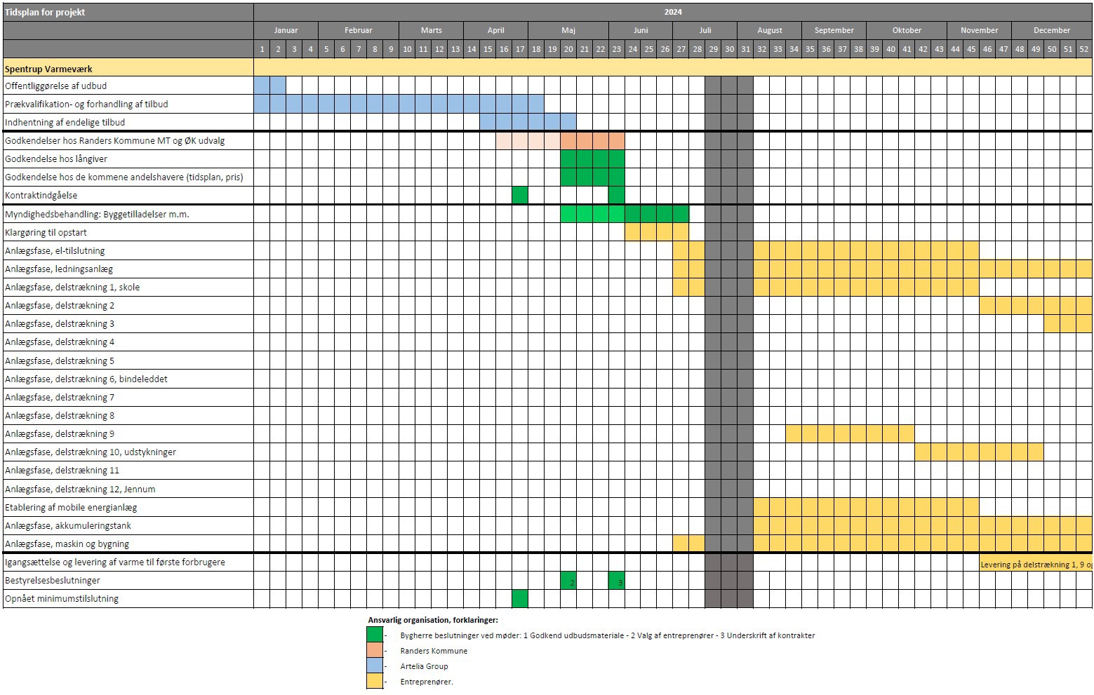 Som kommende fjernvarmeværk med indkøb af el fra vindmøller, og brug af nyeste varmepumpeteknologi, er vi en af spydspidserne i den grønne omstilling. For hvert hus i byen der konverteres fra naturgas til fjernvarme spares 3600 kg CO2 om året. Det sker lige nu i hele Danmark, og har medført at vores tidsplan er vejledende, således at de bydende har en mulighed for individuelle aftaler - for at imødegå hinanden og den efterspørgsel der lige nu presser dele af branchens leverandører.